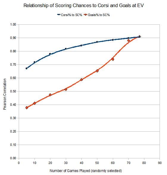 Finally, corsi doesn’t address shot quality, which is often the big knock from those who oppose the measure. While we will get into this issue in greater detail in the next article, studies of the modern NHL have shown that shot quality at a team level is something that doesn’t persist – meaning differences in terms of SH% and SV% is almost entirely due to randomness and goaltending ability.