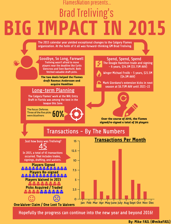 Below is a brief timeline of the major transactions and decisions that Treliving had a hand in. You can click here for a full high-resolution image of it. You can also check out a detailed list of all transactions with the Flames in 2015 here.