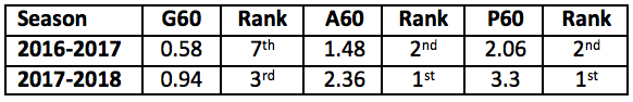 With 13 goals and 48 points in 76 games, Tkachuk put up solid numbers in his rookie season, even if you take the situational context out of the equation. Through 11 games of this season, he’s picked up right where he left off with three goals and eight points. Taking a deeper look at Tkachuk’s productivity paints an even better picture.