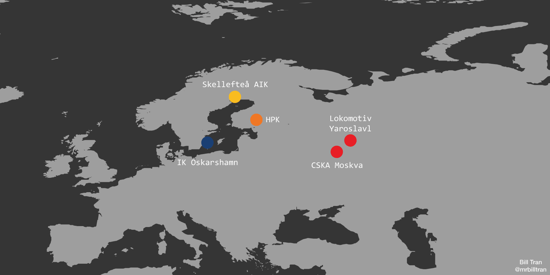 Across the ocean, the KHL has Karnaukhov playing with CSKA Moskva alongside Vey, and Rafikov is with Lokomotiv Yaroslavl. Outside of Russia, Lindstrom plays with Skelleftea AIK of the SHL, Tuulola plays with HPK in Liiga (Finnish Elite League), and Sveningsson plays with IK Oskarshamn in HockeyAllsvenskan.