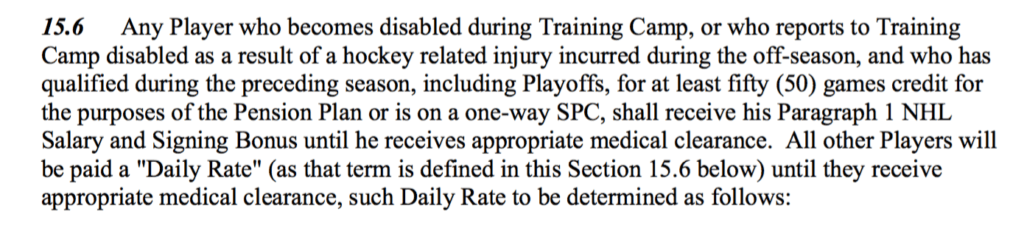 Under the terms of the CBA, because Valimaki spent most of last season with the Flames – he was on the roster for roughly 60 regular season games between being active and being injured – he’s treated as an NHL regular going forward. That means that under Section 15.6 of the CBA, his salary isn’t buried during his injury.