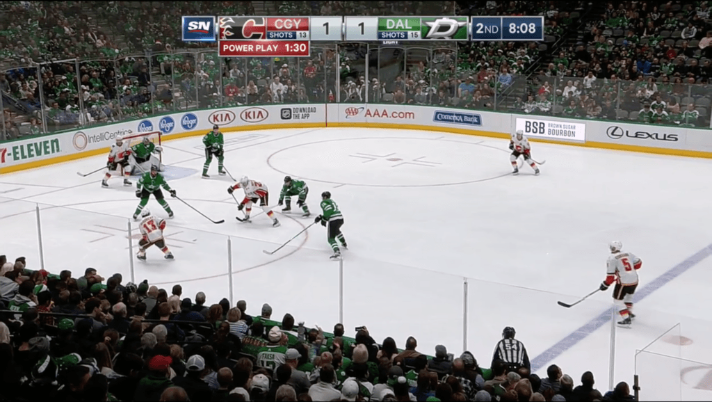 The Flames had three goals on six power play shots, going three for five on face-offs (which allowed them to hold onto the puck and pressure Dallas immediately). The Flames gave up zero power play goals on four Dallas PP shots, going five for seven on face-offs over their three penalty kills.