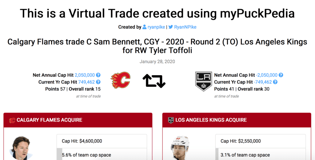 How could that trade come to fruition? We tried out a new tool at Puck Pedia: the myPuckPedia GM Mode, to see what a possible Toffoli trade could look like.
