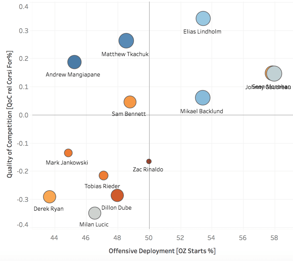 More specifically, get this man more ice time on the power play. Mangiapane only saw 37:39 of man-advantage time this season despite being the second strongest skater at creating high-quality chances individually with an ixG/60 1.93 (behind power play superstar Milan Lucic’s 1.94).