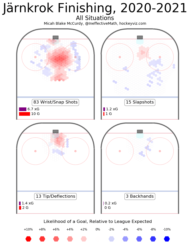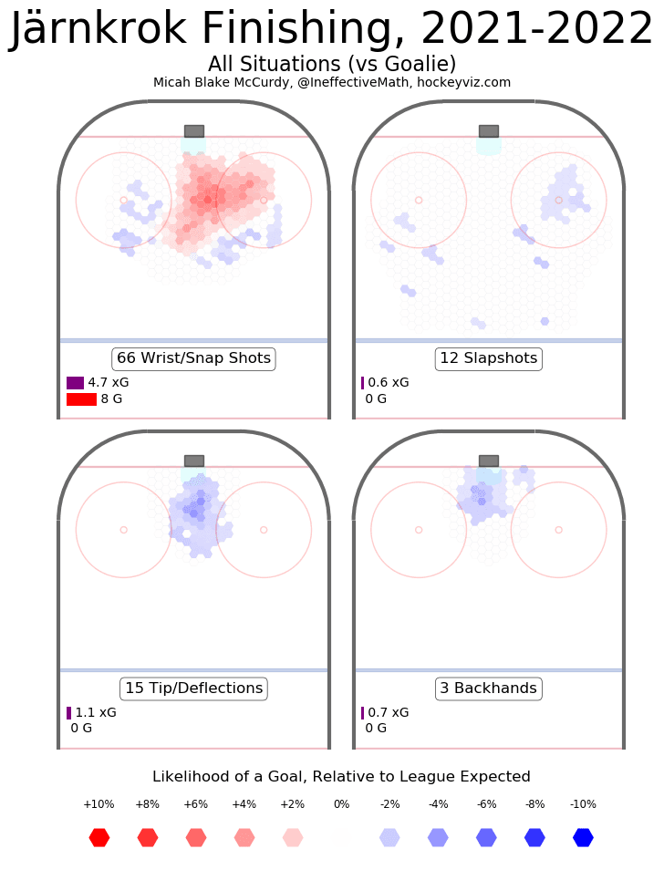 One of the things he does really well despite not getting chances around the net is being able to finish off his chances with an above replacement finishing percentage.