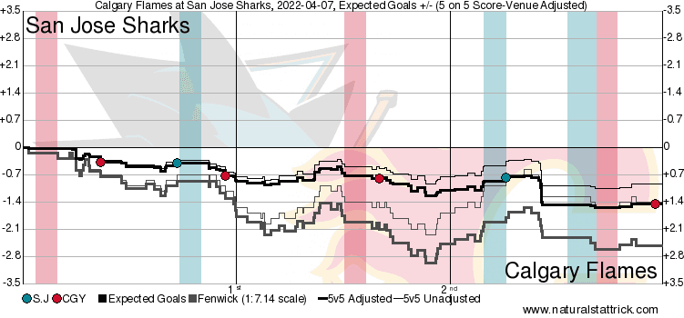 The Sharks tried to push back a few times but it was never enough to completely overtake the Flames. Calgary ended up having an aggressive attack after the score became 3-2 and because of that the Sharks hardy were able to possess the puck. It took the 6-on-5 for them to gain some significant zone time and they were put away by Johnny Pokecheck at the attacking blueline and Dangles Tkachuk in the attacking zone.