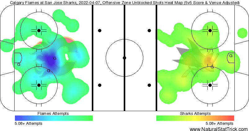 Corsi King – Rasmus Andersson (73.58 CF%) and Noah Hanifin (72.35%) came through with some absolute clutch play as the only regular defensive pair in the lineup. Milan Lucic (81.09%) led the whole team for the second straight night as well. I think Lucic either found one of those boost mushrooms from Mario Kart or the Sharks were just slow because he appeared to have some extra jets on in this game.