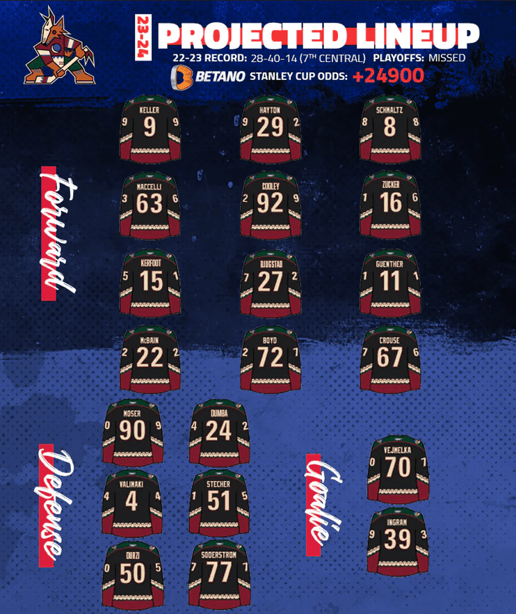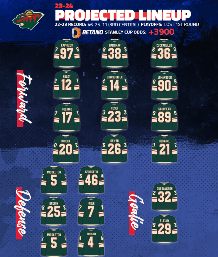 Additions: Logan Cooley, Jason Zucker, Alex Kerfoot, Nick Bjugstad, Zach Sanford, Matt Dumba, Sean Durzi, Troy Stecher, Travis Dermott