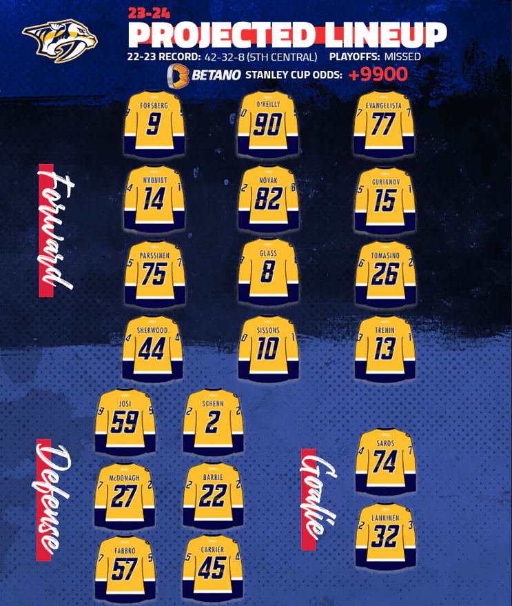 The Predators finished the last quarter of the season with a winning record without Matt Duchene, Ryan Johansen, Filip Forsberg, Nino Niederreiter, Roman Josi, and Mattias Ekholm. If their young players like Tommy Novak, Luke Evangelista, Juuso Parssinen, and Cody Glass can either keep up their play at the end of last season or take another step in their development, and get some help from a healthy lineup and additions of O’Reilly and Nyquist, watch out. This could be a playoff team.