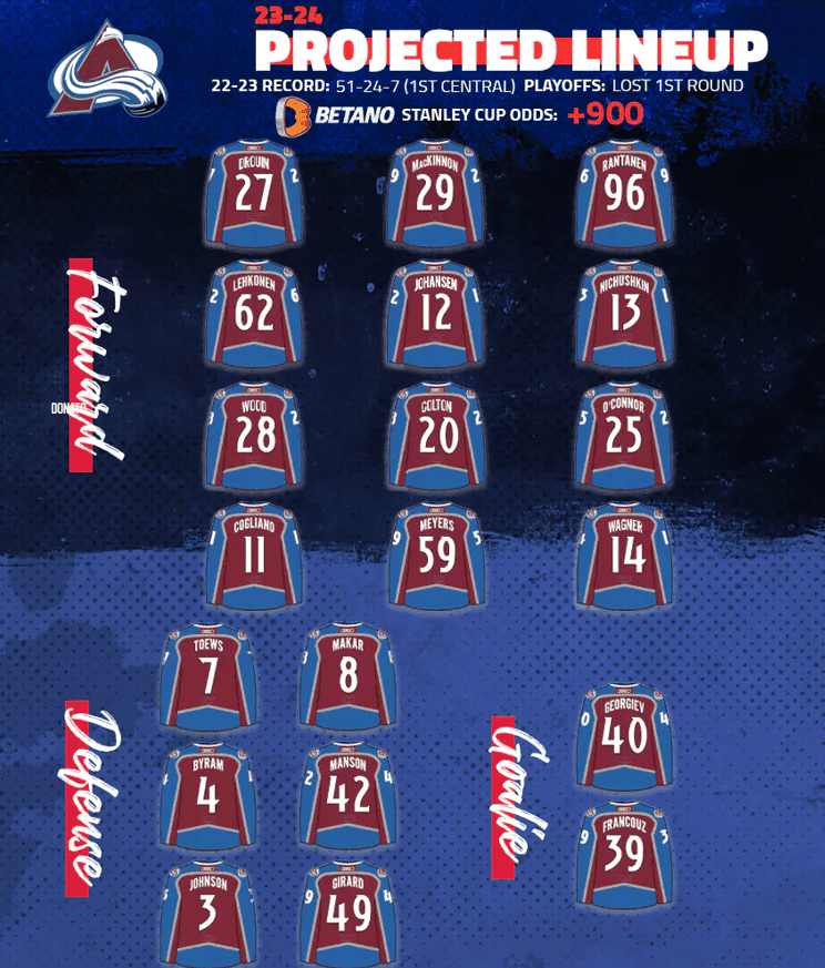 The Avalanche made a lot of changes to the bottom of their lineup this season. But the core group of Nathan MacKinnon, Mikko Rantanen, Cale Makar, and Devon Toews are still intact. As long as that core group stays healthy, the Avalanche are going to be a force in the Western Conference.