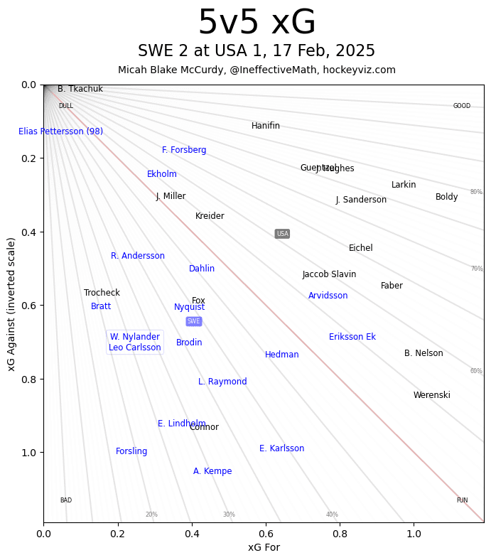xGF% – The percentages are unavailable due to a system error on the website. In a short tournament like this that was always a possibility.