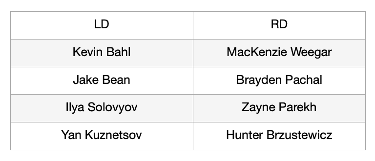 Finally you have your rookies. Zayne Parekh, Hunter Brzustewicz, Ilya Solovyov, Yan Kuznetsov, and Artem Grushnikov.