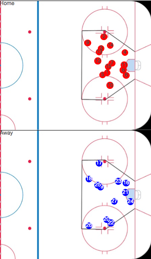 Away | 1 | 14:21 | Jensen | 1 | 22 | 23 | 27 | 36 | 67 | 29 | 31 | 46 | 58 | 63 | 70 | 5v5 |
