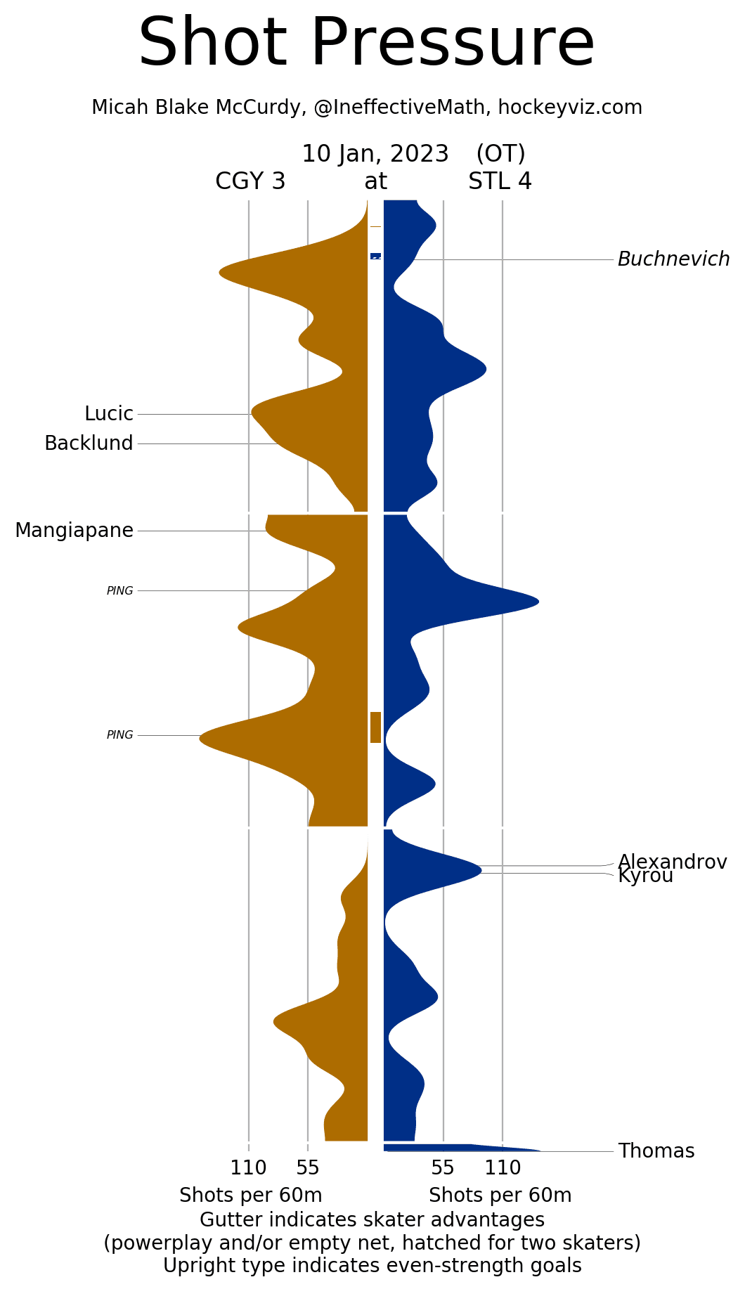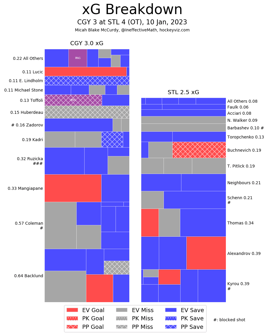 (Stats compiled from Naturalstattrick.com // Game Score from Hockeystatcards.com // xG and Under Pressure charts from HockeyViz.com // Game Flow and Shot Heatmap from NaturalStatTrick.com)