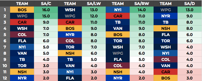 Here is a shot on goal positional rankings sheet I put together with data from this year’s playoffs. Hopefully these can help with your other shot on goal playoff bets.