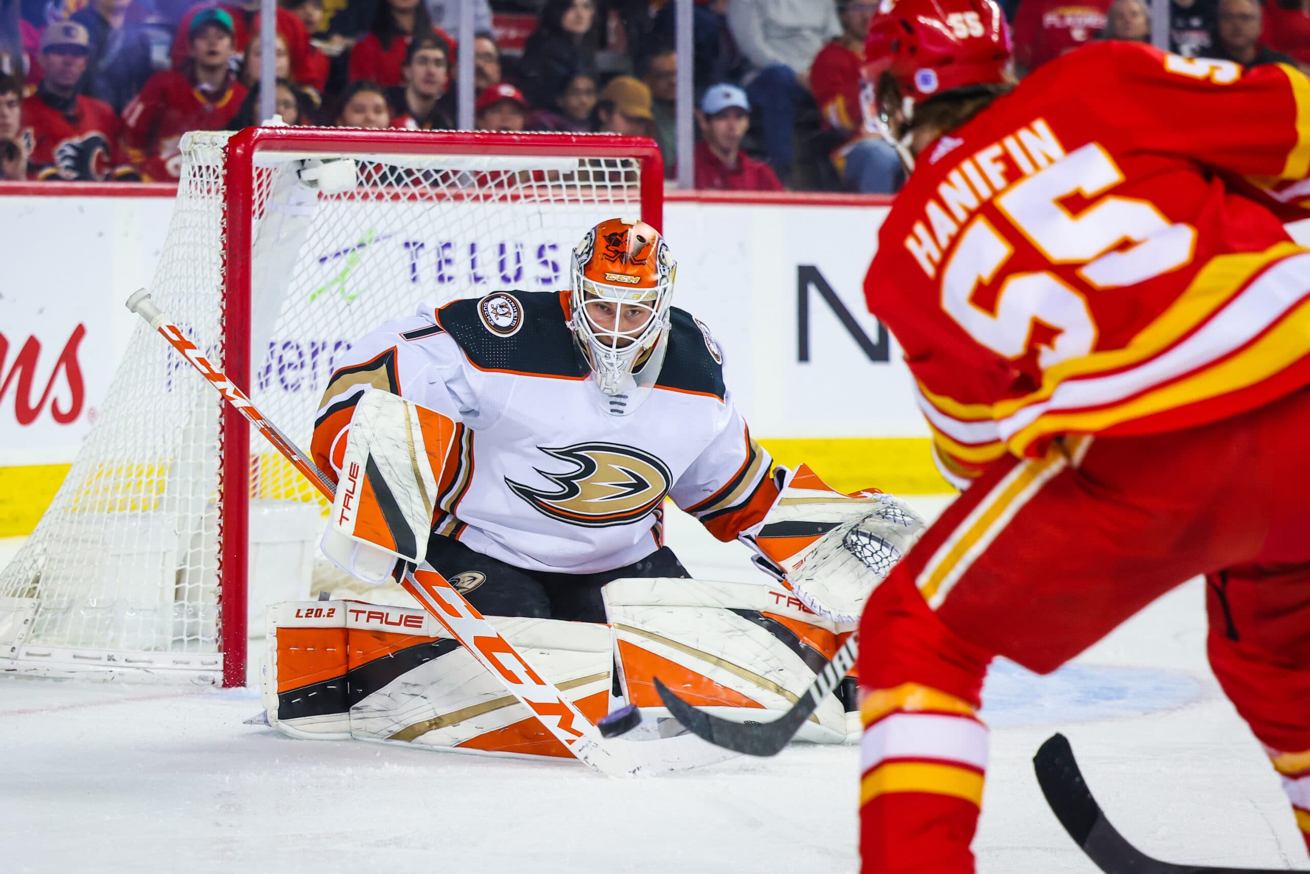 The Chicago Blackhawks’ Arvid Soderblom (4-19-1) vs. The Anaheim Ducks’ Lukas Dostal (10-19-1).