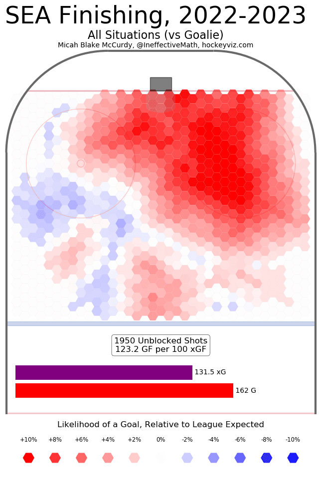 Seattle’s major success is they are 30 goals scored over expected on the season – that’s completely unsustainable and is due for a collapse. Now being this high this late in the season means they’re still going to finish in a positive, but there should be stretches where they don’t get any bounces or are shut out. This ball will drop eventually – as will their goaltending which is still not the best – and when it does that is when Calgary can pounce.