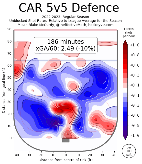 There isn’t much overlap to see here – the Hurricanes have defended extremely well thus far and are one of the best teams in the league statistically because of it. Its going to be a real test for everyone involved to score. Calgary has some holes defending in the upper slot but one game without a top 4 defender can do that to a team.