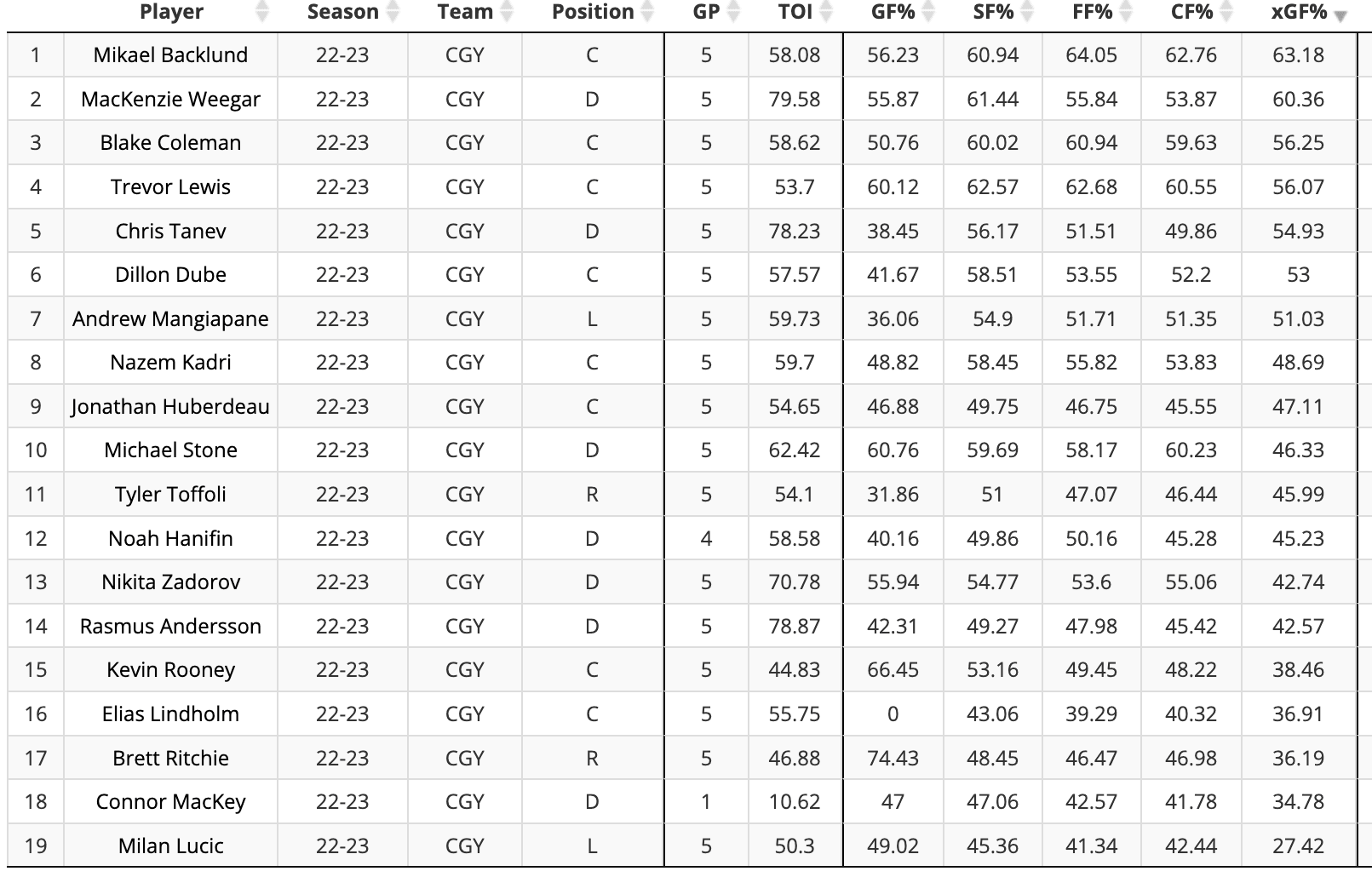 In terms of xG the Flames themselves have had a bad couple of games – yet still got a win against Carolina. The win was on the back of some strong goaltending from Markstrom and really had nothing to do with the play of the 18 skaters – it was not good at all. Many players have come crashing back down to normal numbers with Backlund and Weegar still sitting above the rest. Backlund doesn’t really play enough for player props to make much sense, but there may be something with Weegar if the oddsmakers have something there. The top line continues to be well below adequate and putting money on them to do something not on the power play… the consistency isn’t there yet to make it a worthwhile investment.