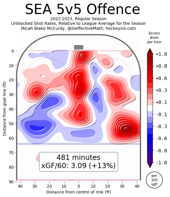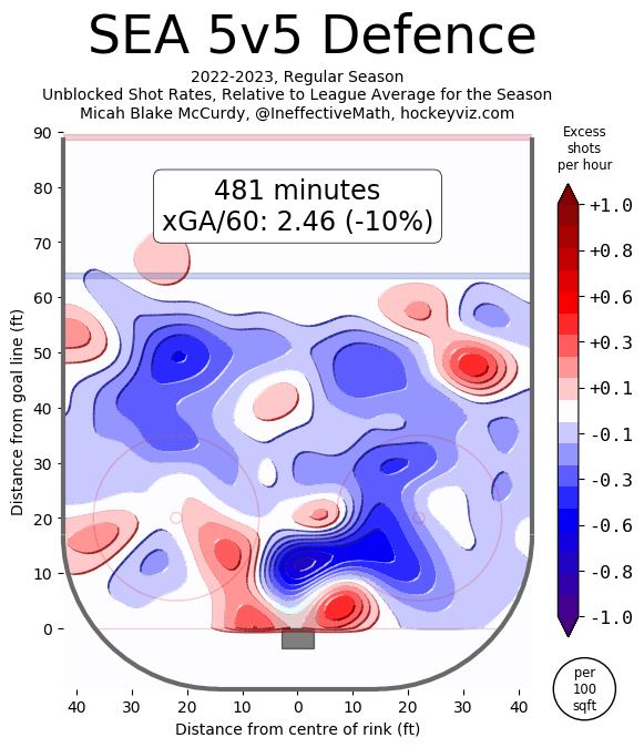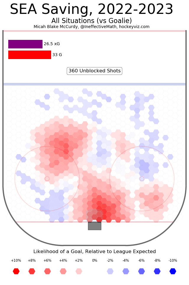 Lots of charts today, it’s because Seattle is one of the more interesting teams in the league. The skaters follow through with the process it takes to win quite well, but they haven’t been able to buy a proper save since their inception last year. Already this season they’ve let in 6 goals above expected – one would expect regression but then you see whose in net and that expectation starts to fade.
