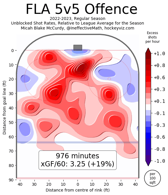 It should come as no surprise that the Panthers are extremely offensive and score multitudes of goals every single game. They sit in the leagues top 5 in terms of expected goal percentage with the Golden Knights, Devils, Bruins, and Hurricanes whereas Calgary is down in 12th, a full 5% back of the Panthers.