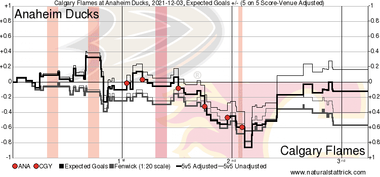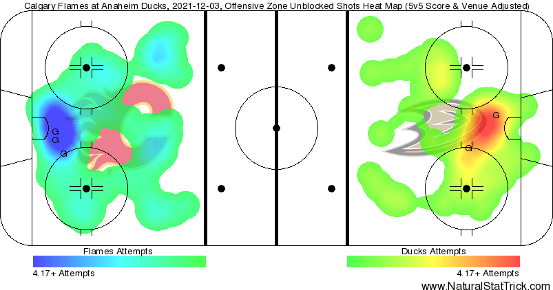 It can never be a normal game for Calgary in Anaheim. It is a positive sign that they’re back to winning games in the Honda Center. This tilt saw ebbs and flows to it where either team had momentum for sustained amounts of time. The goaltenders were very sharp despite there being 6 goals scored in this game. The overall numbers do favour Calgary, let’s break em down.