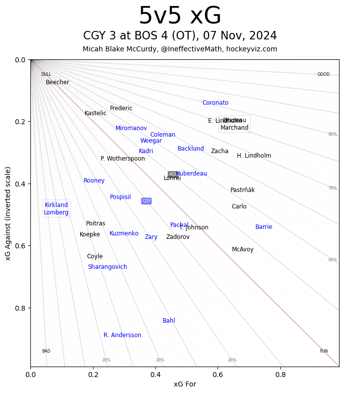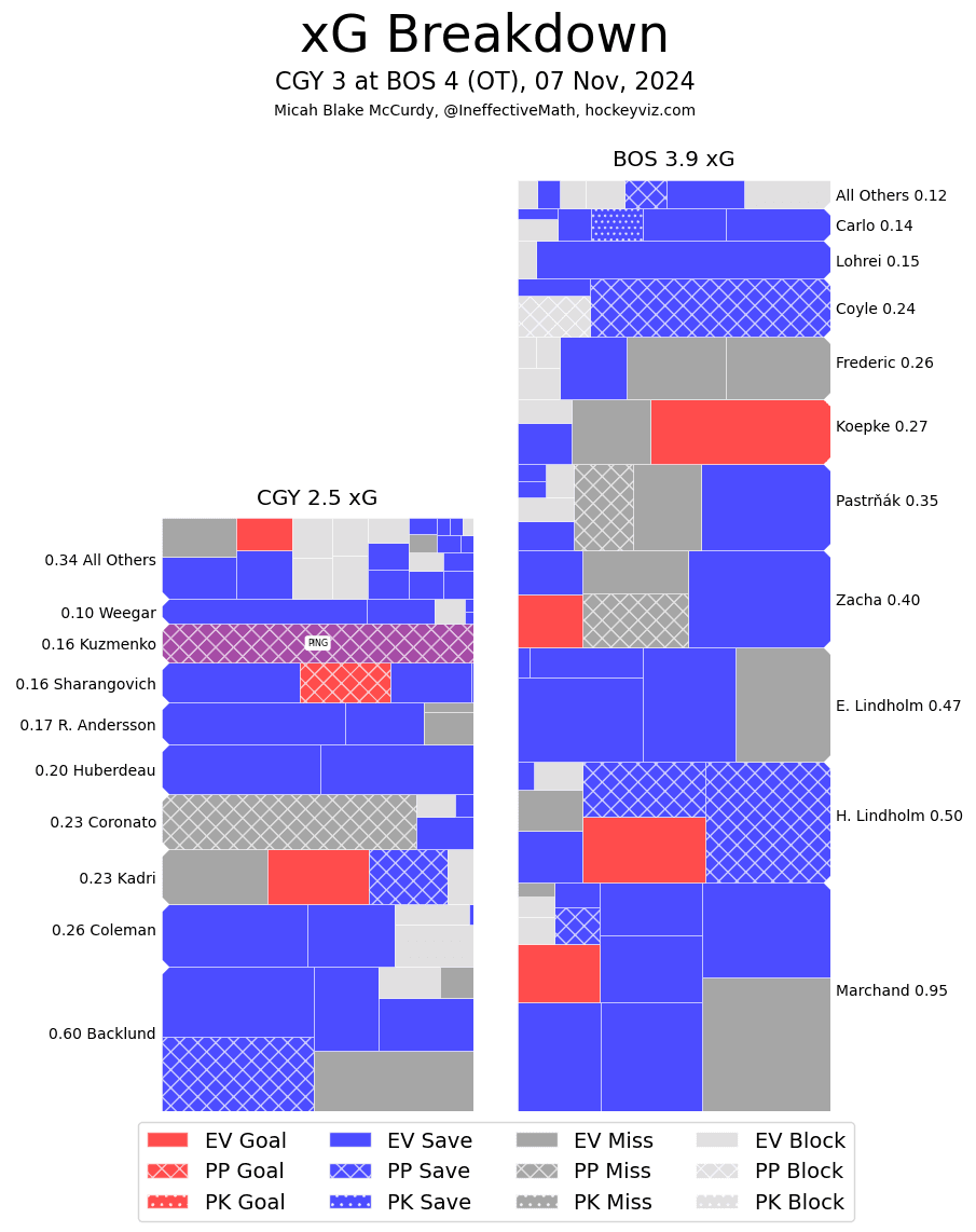 (Stats compiled from Naturalstattrick.com // Game Score from Hockeystatcards.com // xG and Under Pressure charts from HockeyViz.com // Game Flow and Shot Heatmap from NaturalStatTrick.com)