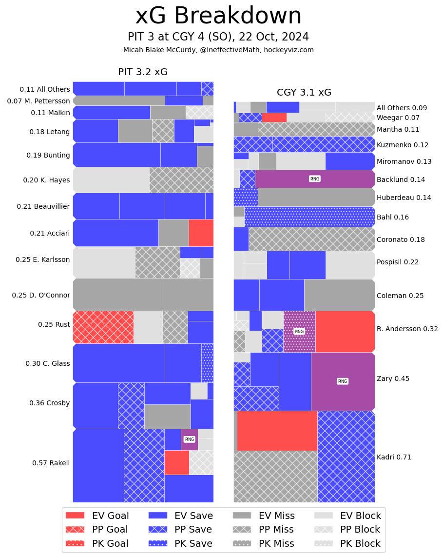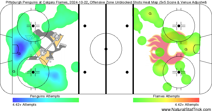 (Stats compiled from Naturalstattrick.com // Game Score from Hockeystatcards.com // xG and Under Pressure charts from HockeyViz.com // Game Flow and Shot Heatmap from NaturalStatTrick.com)