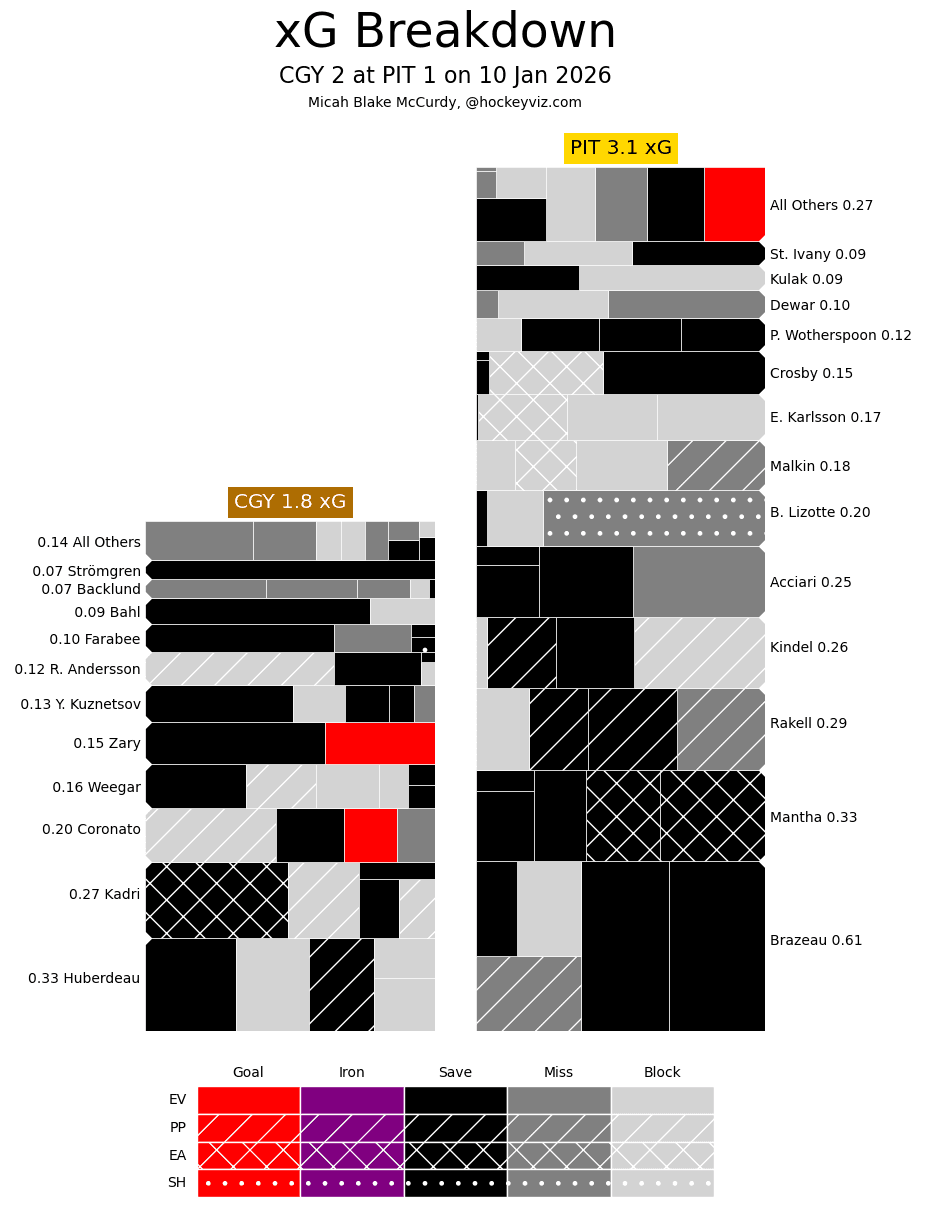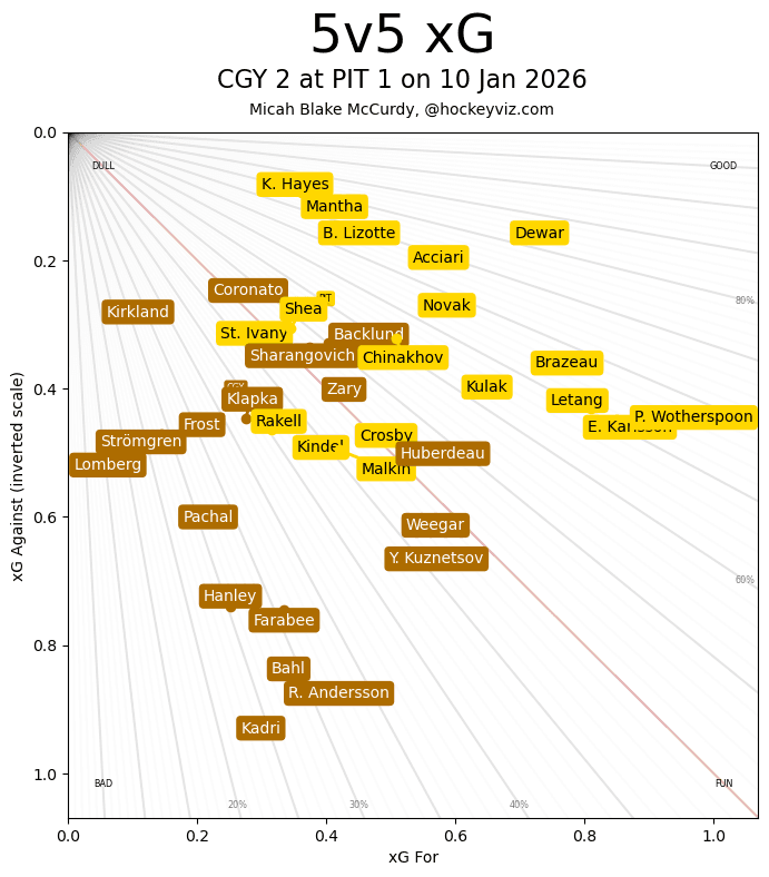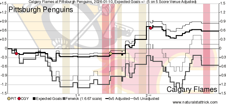 (Stats compiled from Naturalstattrick.com // Game Score from Hockeystatcards.com // xG and Under Pressure charts from HockeyViz.com // Game Flow and Shot Heatmap from NaturalStatTrick.com)