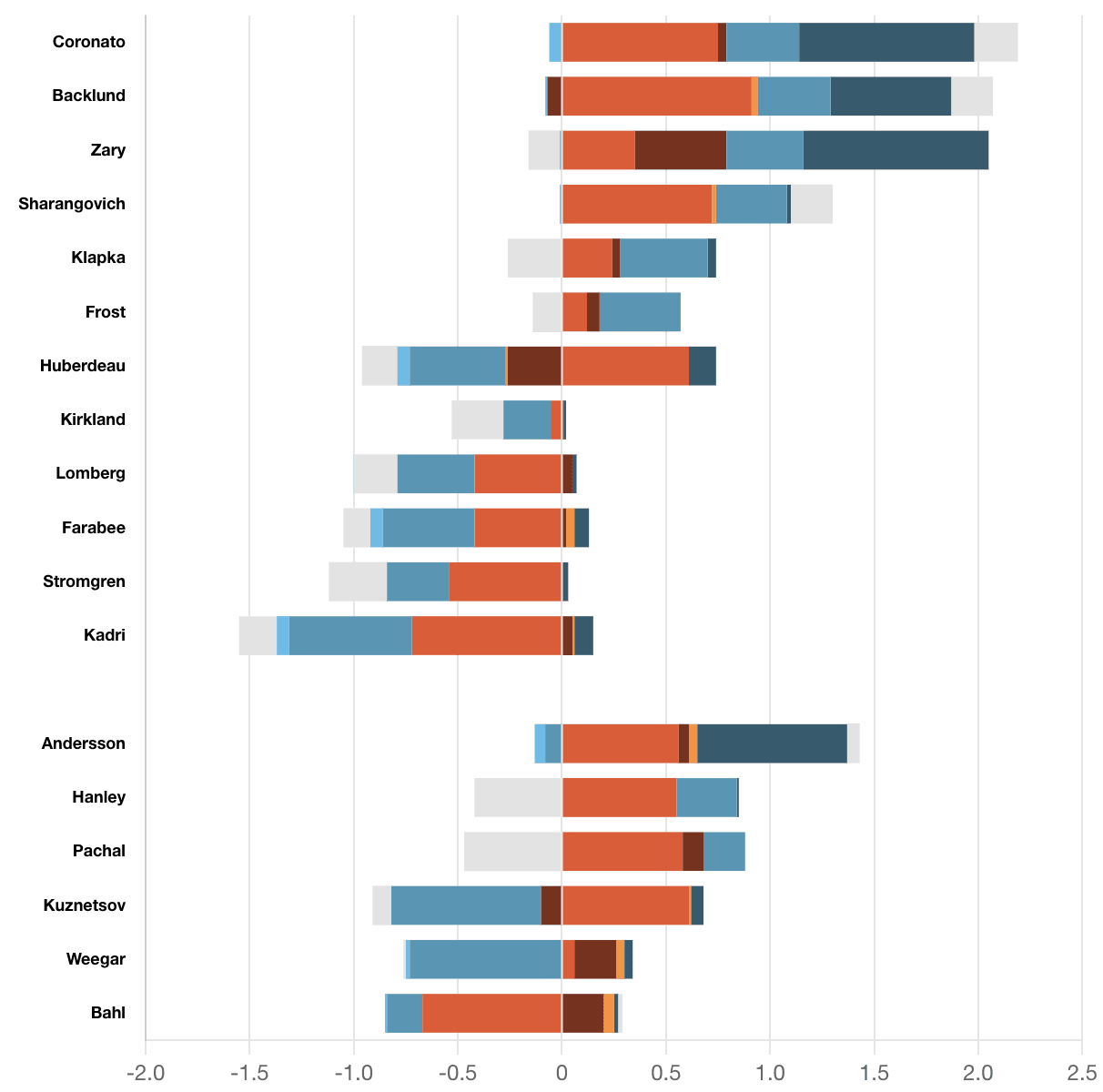 Taken By Chance – Nazem Kadri (29.88 SCF% // 0 HDCF%) continues to be absent from the scoresheet. He saw a 7-0 high danger chance ratio against him, failing to generate anything of significance at 5v5 with his wingers. 5 straight pointless games and just 1 assist over his last 11 played. He’s got to be at the forefront of all these struggles, maybe not as much as the 10-million-dollar man Huberdeau (58.09 per cent // 37.73 per cent), but that level of production with his contract can’t happen. The rush attack with this team continually fails to incorporate layers into their attack. They break in as a straight line and then wonder how they can’t get to the crease. The way the team is playing is making it very easy for defenders to limit their attack and their lack of foot speed is not helping their cause.