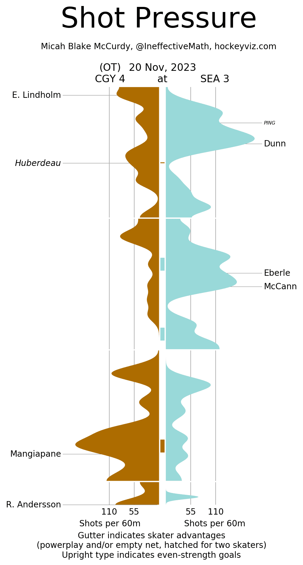 (Stats compiled from Naturalstattrick.com // Game Score from Hockeystatcards.com // xG and Under Pressure charts from HockeyViz.com // Game Flow and Shot Heatmap from NaturalStatTrick.com)