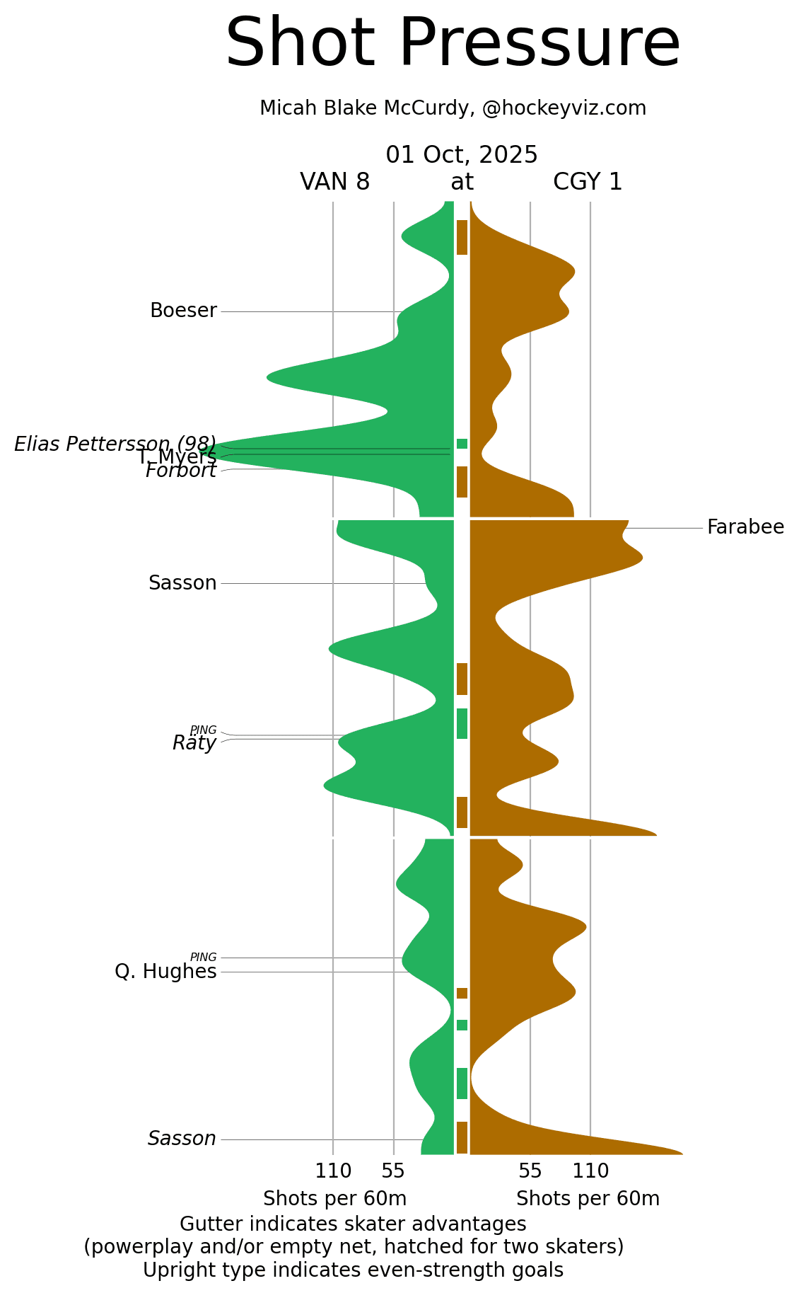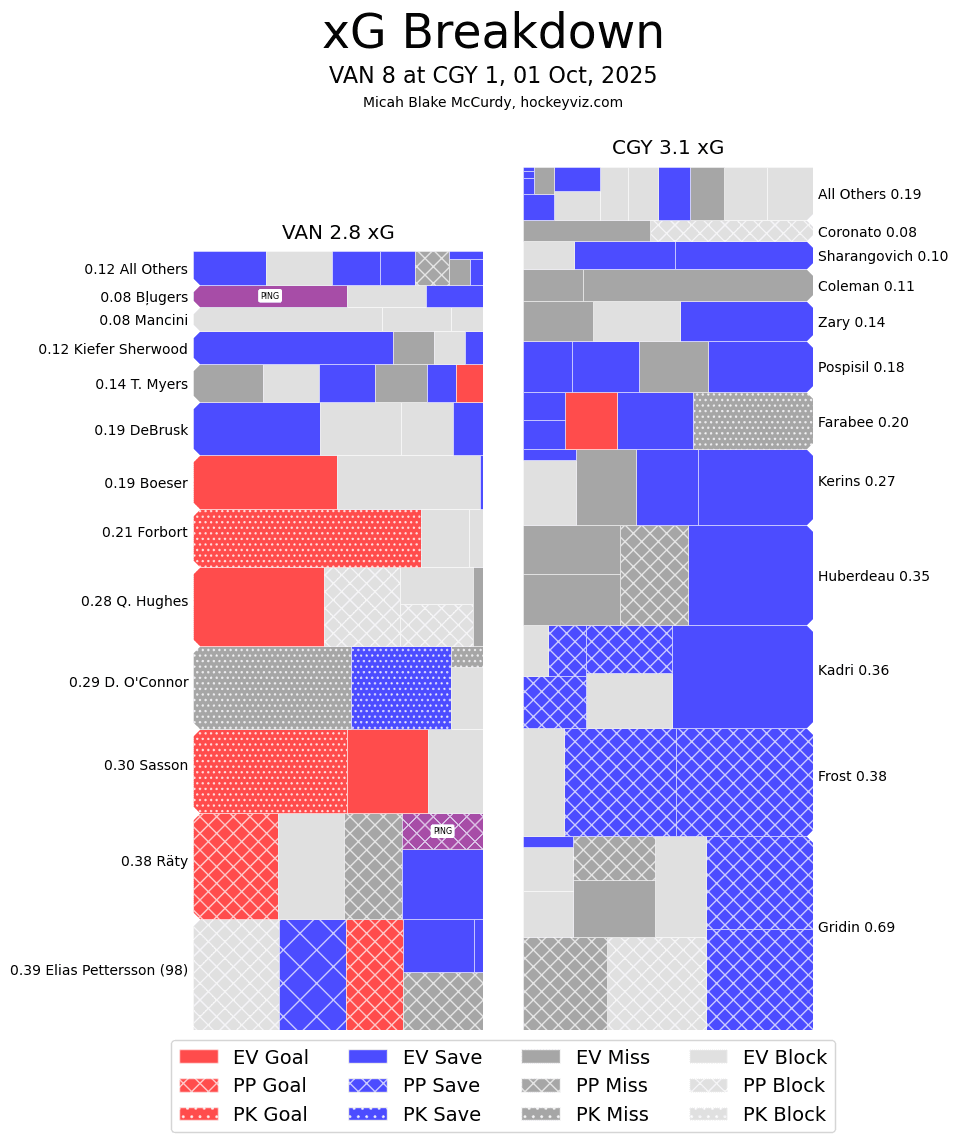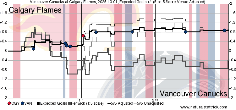 It’s a Team Game – I like writing these because the numbers do not tell the entire story in every game. By the time Calgary was accumulating 5v5 high danger chances the Canucks had a 4-0 lead. It was congregated to a small amount of time as well – not being spread out as a consistent attack over time. Rather, it was a really good stretch for a brief time carrying the percentages. Context matters – individually these are tools to take quick glances, but after collecting enough of a sample inferences can be made about where players are at or where they could go. It’s why basing Rory Kerins’ performance of any one such game – in the pre-season no less – is a slap in the face to all the work he’s put in prior. Grinding through the ECHL and finding all-star success in the AHL – he’s more than earned his real shot. Him showing up to camp early and dominating lesser competition just showcases he is ready for the challenge – one that only the regular season can determine if he’s up for or not.