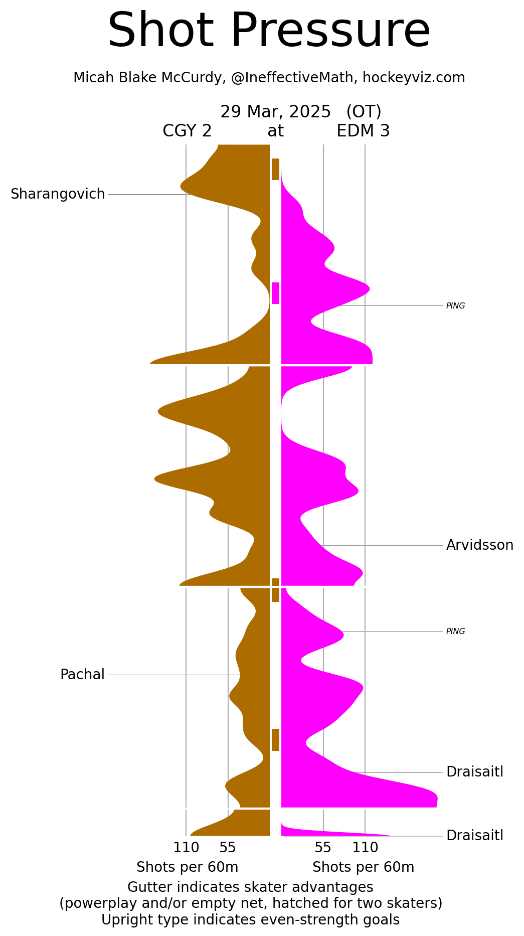 Taken By Chance – The Flames fourth line had one of their best outings in a while. Kevin Rooney (70.91 SCF% || 100 HDCF%) and Adam Klapka (61.60 per cent || 100 per cent) both played less than 10 minutes 5v5 but earned over three high danger chances. Brayden Pachal (70.21 per cent || 100 per cent) earned himself a goal and an assist. I’m good with him drawing back into playing every game. I think he is a solid addition to the lineup and brings massive stability to the teams third defence pairing. The wingers are being more aggressive, and the Flames offensive players have woken up – Pachal raises the defensive level of the team more than he affects the offence.