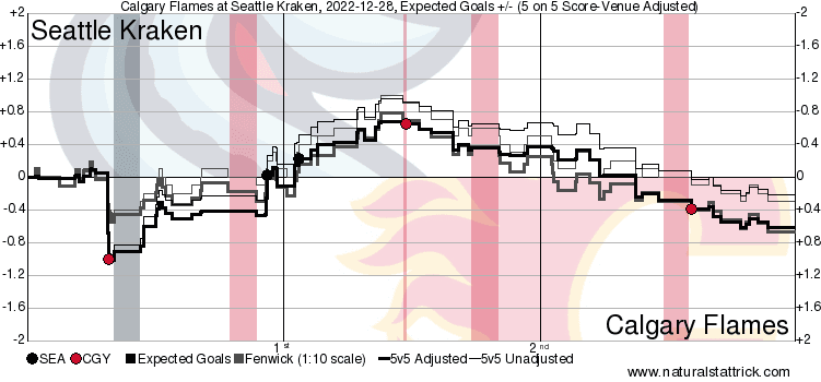 It’s a Team Game – The push started for Calgary after they got the tying goal. A steady wave of attack after attack came without the need for them to have to kill a penalty either. It was a perfect storm of chance after chance and a whole lot of puck possession. Calgary has seemingly got the recipe for the game they want to play figured out – the players themselves just need to find ways to execute enough within the parameters of that game. Against the Kraken three was enough.