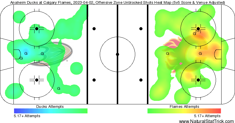 It’s a Team Game – In the first two periods high danger chances between the two clubs was close, but in the third period the Flames had an 8-0 advantage. Everyone on the ice was actively contributing to scoring chances and maintaining long stretches of play with the Ducks buried in their own zone. That tired them out so much on the second half of their back-to-back the Flames were able to jump ahead and seal the much needed victory.