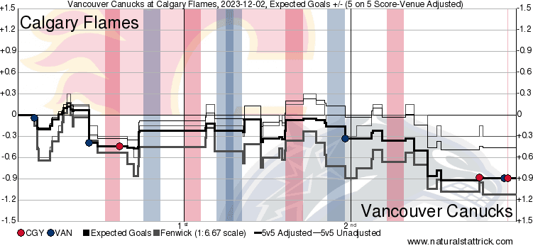 It’s a Team Game – Not one period did the Flames manage to get a 5v5 high danger advantage. The quality of their shots in the third period when they needed to push the most was quite bad – it took the goalie being pulled for someone to make a move near the net. Credit to Vancouver they really made it hard for anyone to find space in their own zone. Calgary would have benefited from playing with a lead as it wouldn’t have allowed the Canucks to lock up the defensive zone as effectively.