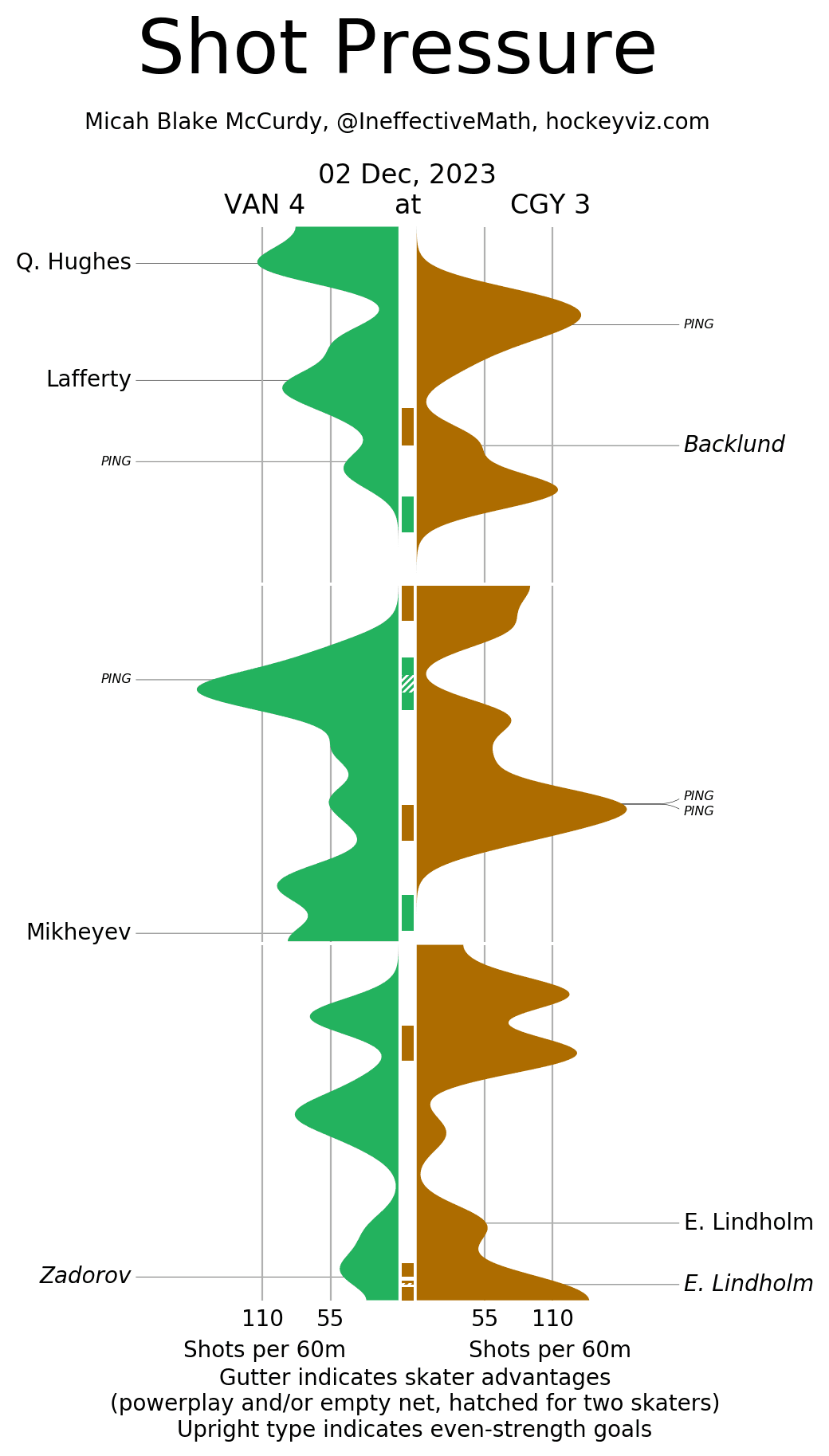 (Stats compiled from Naturalstattrick.com // Game Score from Hockeystatcards.com // xG and Under Pressure charts from HockeyViz.com // Game Flow and Shot Heatmap from NaturalStatTrick.com)