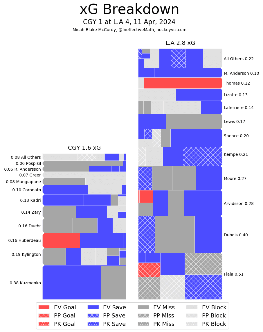(Stats compiled from Naturalstattrick.com // Game Score from Hockeystatcards.com // xG and Under Pressure charts from HockeyViz.com // Game Flow and Shot Heatmap from NaturalStatTrick.com)