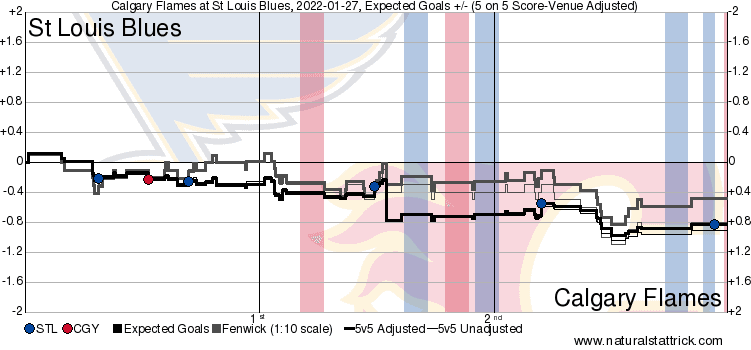 The St. Louis Blues had their best shutdown guys go up against Calgary’s top line tonight and win. The depth lines still had plenty of scoring chances that could have kept Calgary in it, but nobody other than Backlund could come through. The Blues fourth line significantly outmatched Calgary’s tonight too, but the other line struggling was a more prominent reason for getting just one goal.