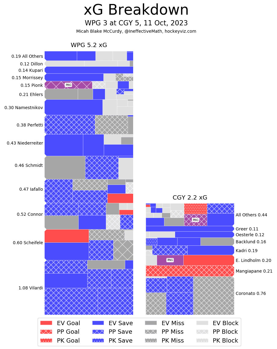 (Stats compiled from Naturalstattrick.com // Game Score from Hockeystatcards.com // xG and Under Pressure charts from HockeyViz.com // Game Flow and Shot Heatmap from NaturalStatTrick.com)