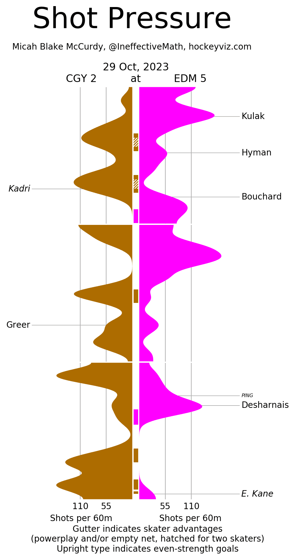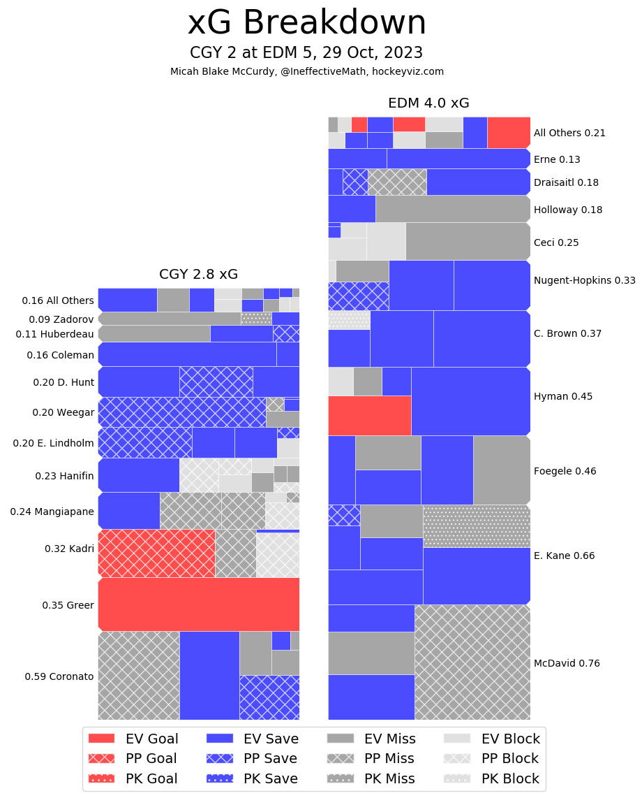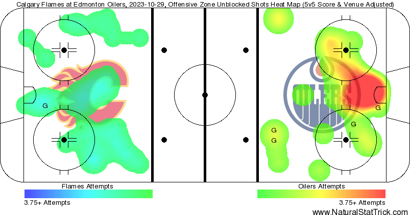 (Stats compiled from Naturalstattrick.com // Game Score from Hockeystatcards.com // xG and Under Pressure charts from HockeyViz.com // Game Flow and Shot Heatmap from NaturalStatTrick.com)
