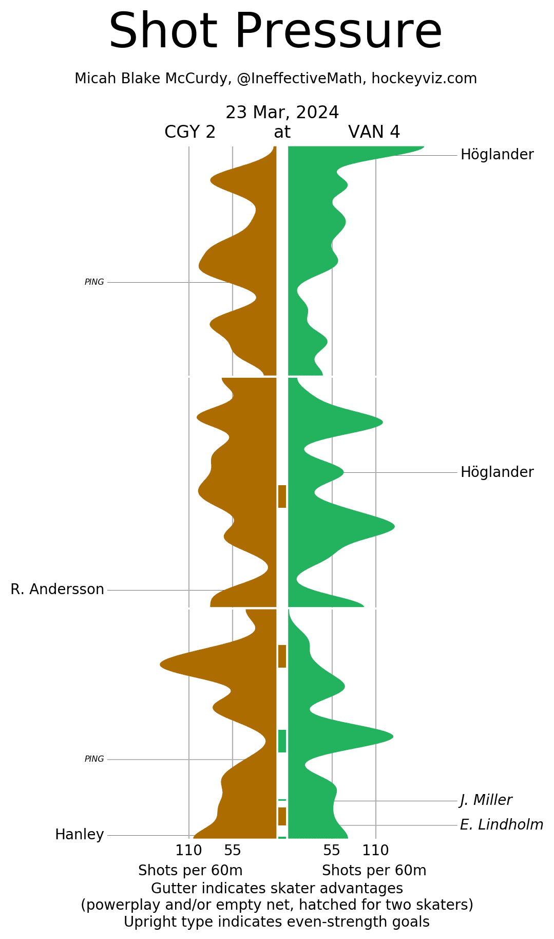(Stats compiled from Naturalstattrick.com // Game Score from Hockeystatcards.com // xG and Under Pressure charts from HockeyViz.com // Game Flow and Shot Heatmap from NaturalStatTrick.com)