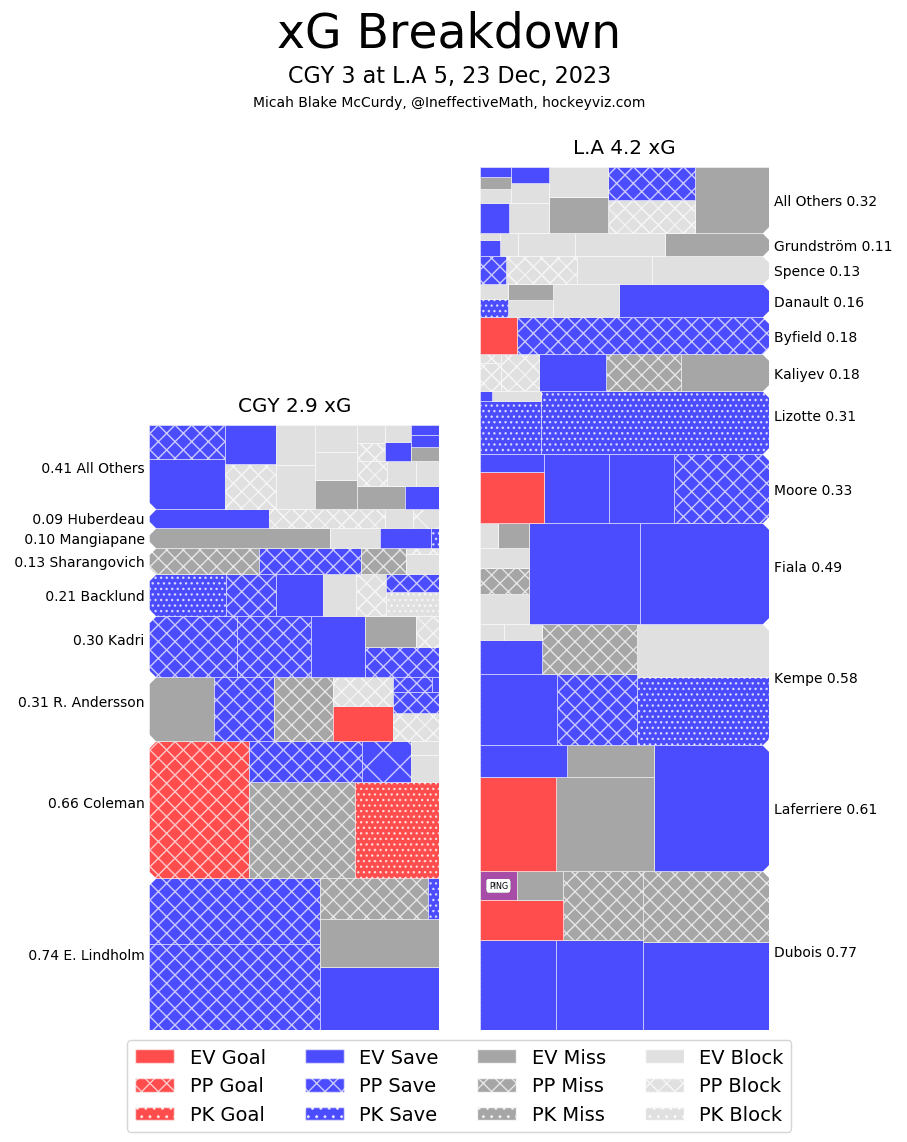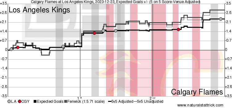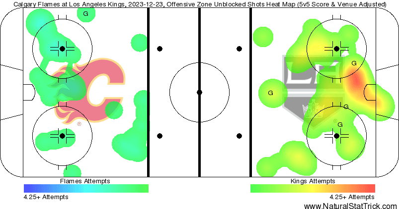 The Calgary Flames failed to collect their fourth straight win as the Los Angeles Kings fended off an onslaught of power plays to emerge victorious. They kept to their typical game script with a slower first 40 minutes and then a third period that can give people hope. Tonight the Kings got through with the help of strong play when they got the chance and really limited Calgary at 5v5. Without the power plays it’s relevant to ask whether or not Calgary would have been able to muster up any offence.