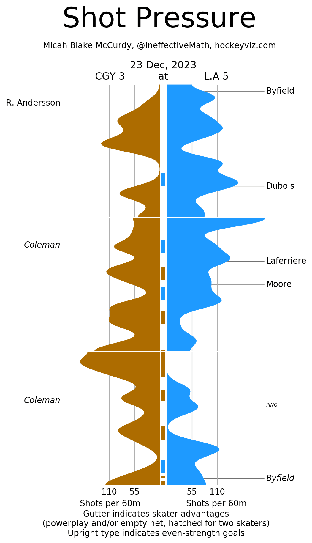 Corsi Clown – Rasmus Andersson (15.2%) can be so polarizing. One game he’s making beautiful drop passes into the slot after a successful pinch, the next he sees himself out-chanced 26-5 in his ice time. For the guy that lead them in ice time to see that much against is a major reason for the outcome – it can’t happen like this against good teams. Nobody on this roster other than the goaltender gets a pass after that performance.
