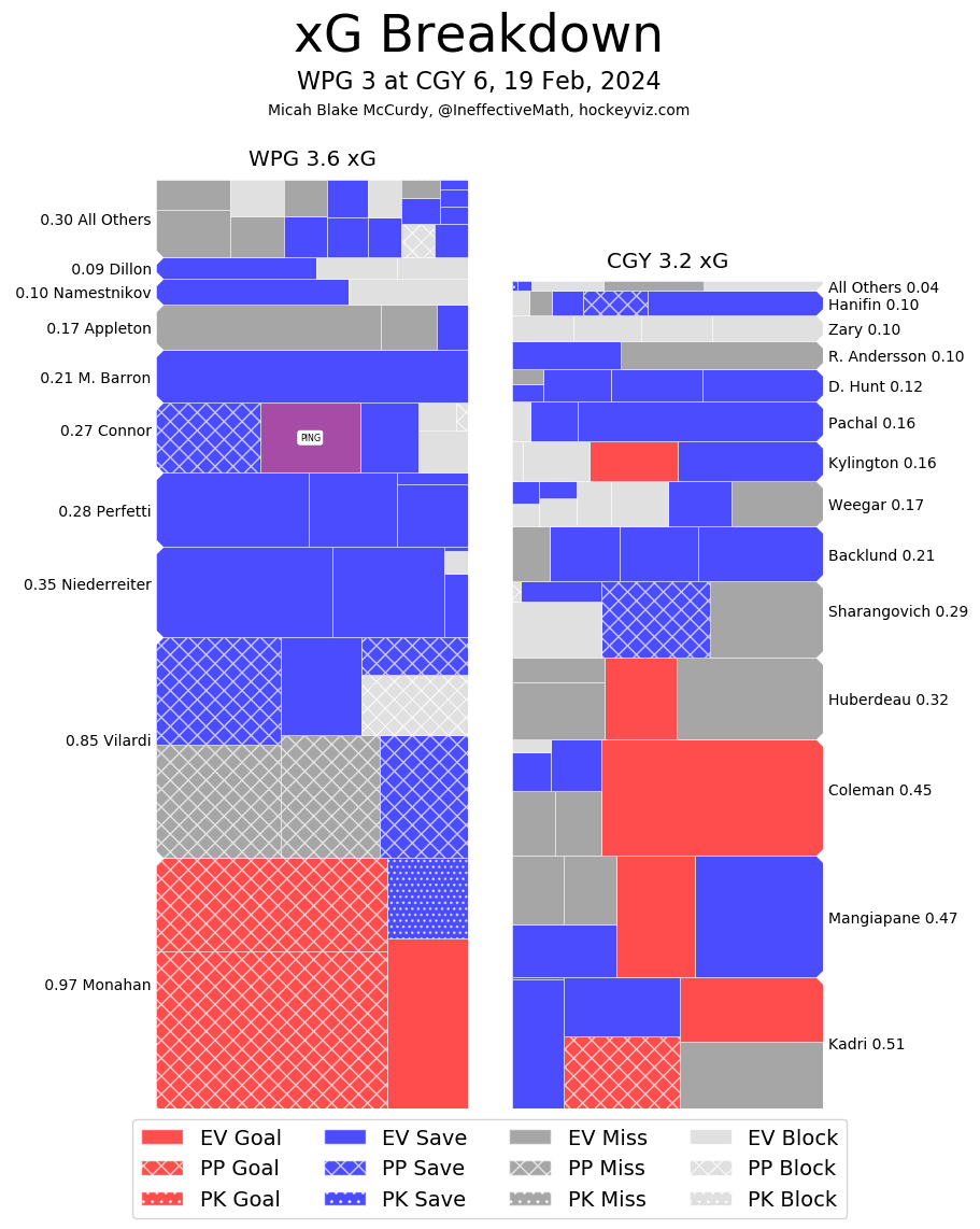 (Stats compiled from Naturalstattrick.com // Game Score from Hockeystatcards.com // xG and Under Pressure charts from HockeyViz.com // Game Flow and Shot Heatmap from NaturalStatTrick.com)