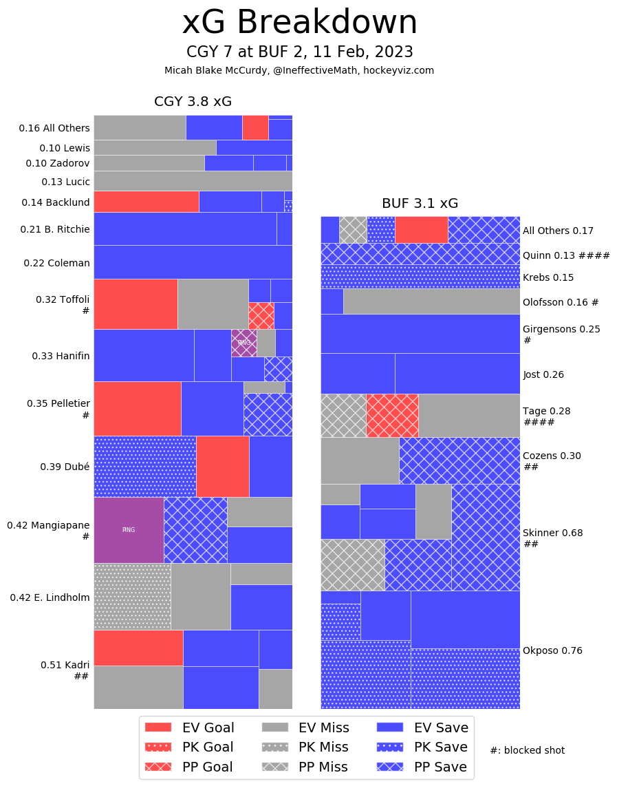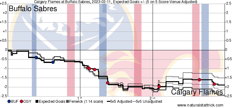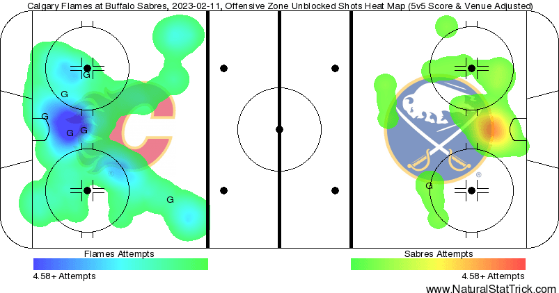 xGF% – Pelletier (94.08%) is not going anywhere anytime soon – more on him below. 5 players over 80% and tonight wasn’t spurred by heavy shot volume from low scoring areas. The Flames took their time – made dangerous passes on the rush – and created chaos around the crease frequently. When you have everybody except one player on your roster above 50% you controlled pretty much everything. The Sabres really played quite bad – but the Flames needed that badly.
