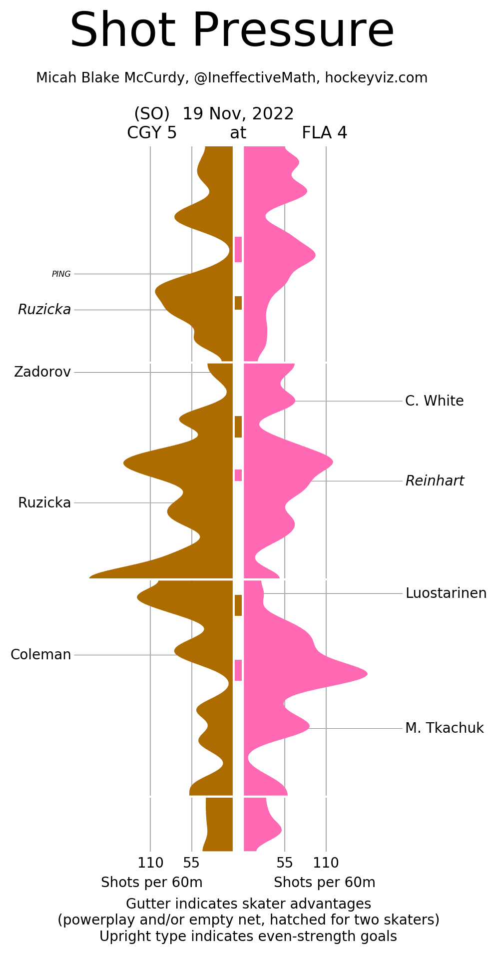 (Stats compiled from Naturalstattrick.com // Game Score from Hockeystatcards.com // xG and Under Pressure charts from HockeyViz.com // Game Flow and Shot Heatmap from NaturalStatTrick.com)