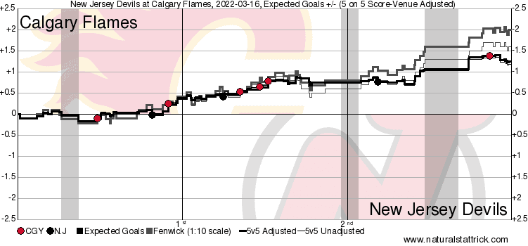 Game Score – Matthew Tkachuk (3.06 game // 1.64 average) and his 3-point night are on top – bonus doing it while his dad was in the stands. Dillon Dubé (2.13 // 0.33) with an extremely nice display of his speed when he got his goal. That’s NHL level speed and Calgary needed it against the swift Devils. Rasmus Andersson (2.02 // 0.97) has consistently been having consecutive major impact games – and he’s doing it playing the most minutes out of anyone on the Flames blueline. He’s signed for another 4 seasons at 4.55M after this year is over – just providing tremendous value.