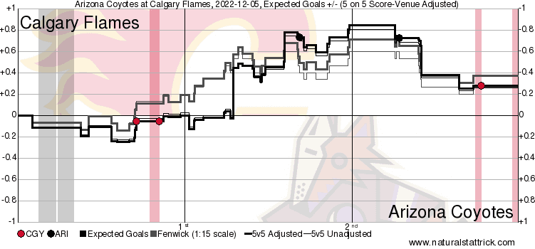 The Calgary Flames finally got some significant contributions from their power play, and it was key in victory over the Coyotes. Play and chances were dictated by Calgary pretty much the whole game, but it was mostly made up of medium danger chance opportunities. Dan Vladar proved himself a big time player again coming in clutch late when the Flames defensive coverages were breaking down. Not an overall great 60 minute effort, but a wins a win.