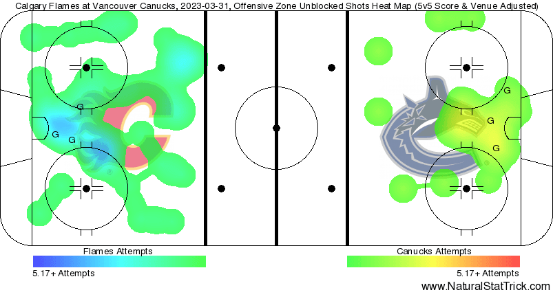 Corsi Clown – Every single person finished in the positive column for shot attempts. NaturalStatTrick had the all situation shot attempts 87 to 40 in Calgary’s favour. 5v5 they were 60 to 28.